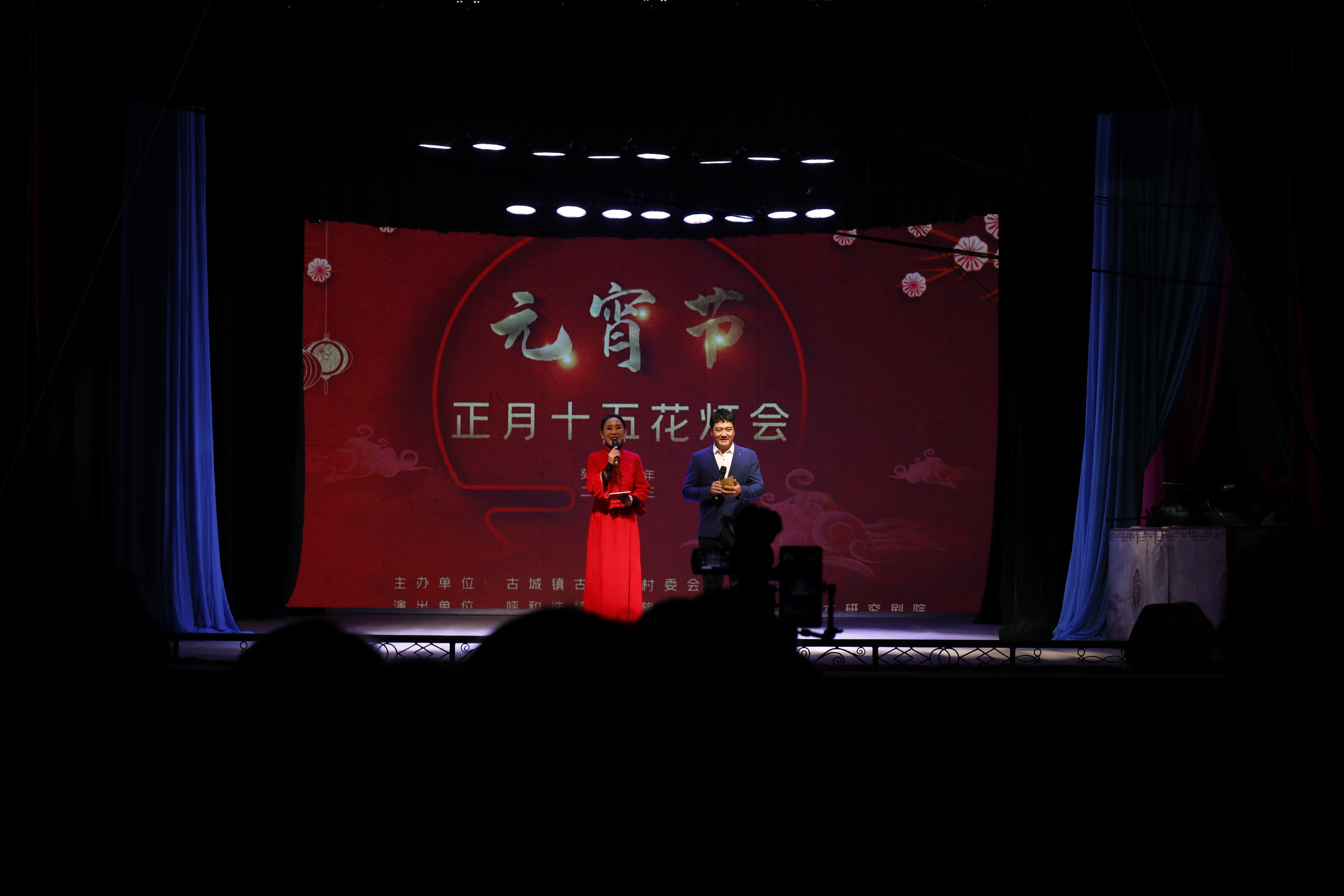 ? 正月十四晚,華燈初上的古城村,燈火璀璨,流光溢彩,首場(chǎng)演出,戲臺前圍滿(mǎn)了聽(tīng)戲觀(guān)眾,二人臺傳統小戲《鬧元宵》作為開(kāi)場(chǎng)節目,贏(yíng)得了觀(guān)眾的陣陣叫好聲。