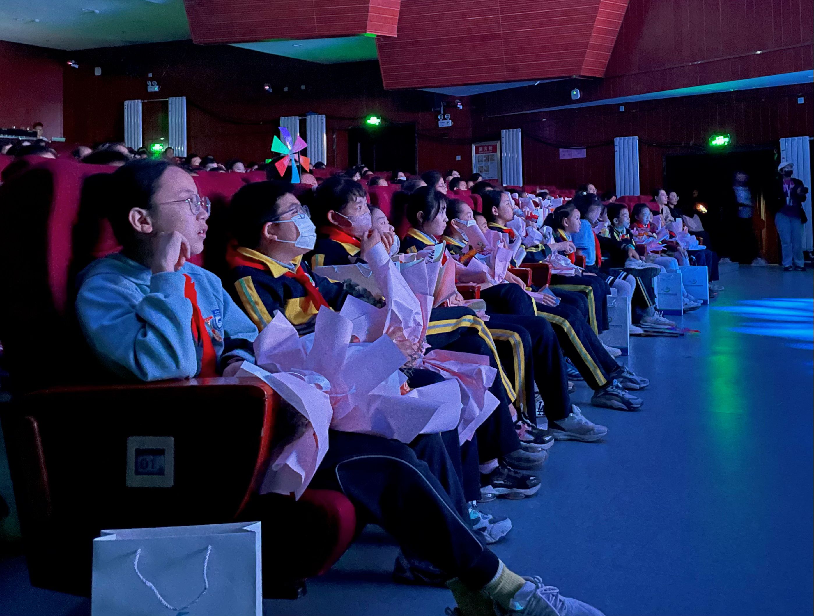 ? ? 為體現呼和浩特市少先隊員光榮感,加強少先隊員政治啟蒙和價(jià)值觀(guān)塑造,本場(chǎng)首演特別邀請了全市部分“優(yōu)秀少先隊員”“紅領(lǐng)巾獎?wù)隆鄙傧汝爢T代表進(jìn)場(chǎng)觀(guān)看。極具創(chuàng )意的舞美呈現,獨特的服裝造型和跌宕起伏的故事情節,引發(fā)了小朋友們時(shí)而哄堂大笑、時(shí)而著(zhù)急直跺腳。演員們用詼諧幽默的表演帶給現場(chǎng)觀(guān)眾寓教于樂(lè )的沉浸式體驗。當由8歲的田覓蜜生動(dòng)演唱的主題曲《風(fēng)的方向》響起,將現場(chǎng)氛圍推向高潮,“大朋友”小朋友們全場(chǎng)沸騰。