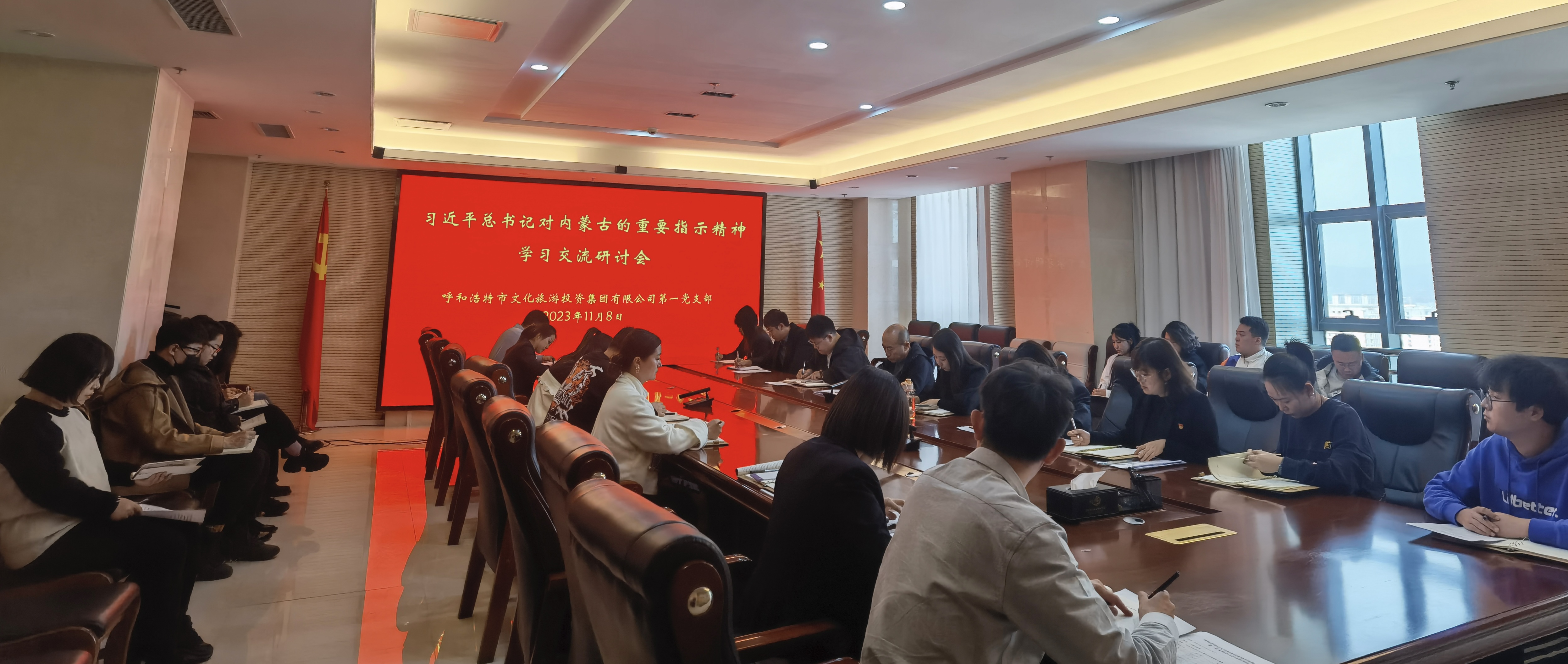 ? ? 11月8日下午,呼和浩特市文化旅游投資集團第一黨支部召開(kāi)學(xué)習貫徹習近平總書(shū)記對內蒙古的重要指示精神交流研討會(huì )。會(huì )議由黨支部書(shū)記范曉東主持,全體黨員及35歲以下青年干部參加會(huì )議。
