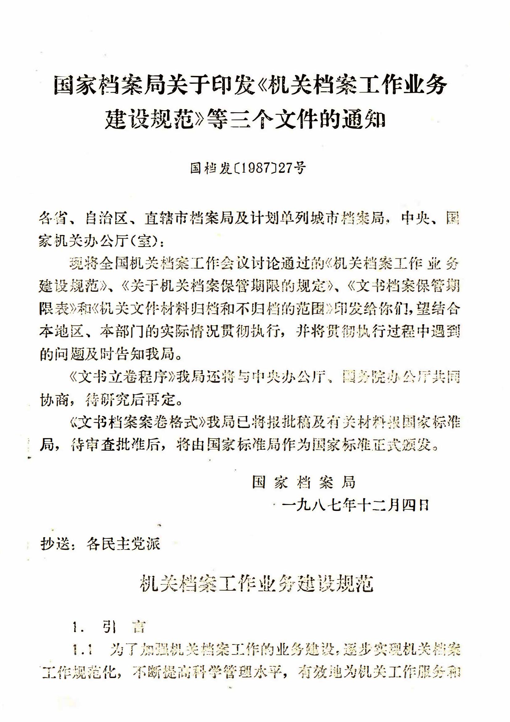 國家檔案局關(guān)于印發(fā)《機關(guān)檔案工作業(yè)務(wù)建設規范》等三個(gè)文件的通知