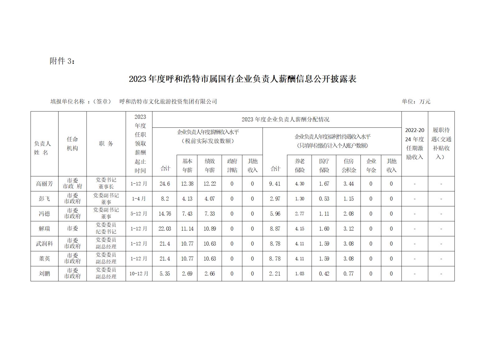 2023年度呼和浩特市直屬?lài)衅髽I(yè)負責人薪酬信息公開(kāi)