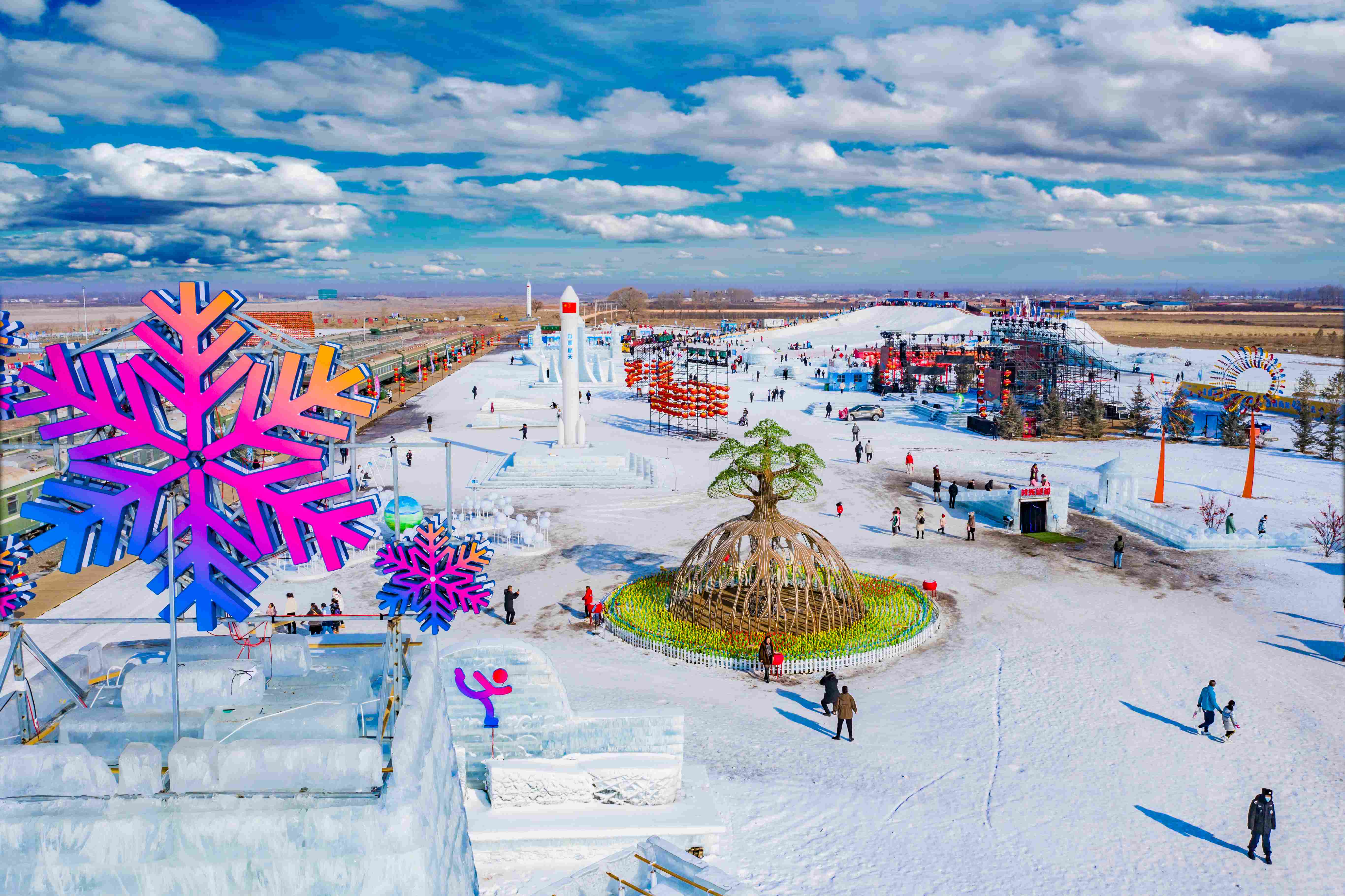 第二屆冰雪節(jié)全面擴容,活動占地面積達20萬平方米。園區(qū)聚焦8大核心板塊,主冰雕“揚帆起航”、冰迷宮、冰酒吧等創(chuàng)意景觀亮相,冰雪娛樂項目更加豐富。