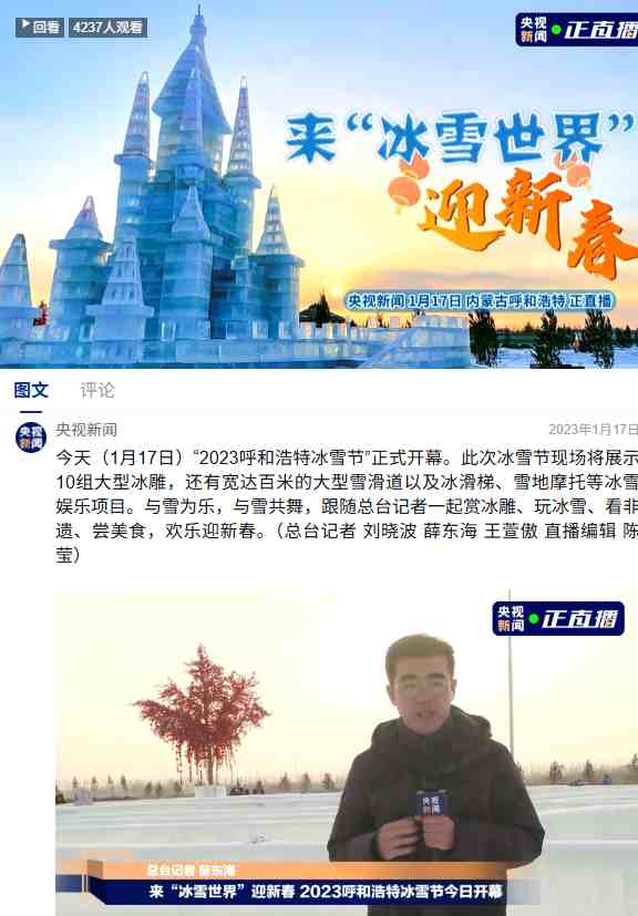 活動期間,央視《新聞直播間》于大年初一進行長達7分鐘的專題直播,呼和浩特歡樂冰雪節(jié)從首屆起便獲得了國家級媒體的高度關(guān)注。