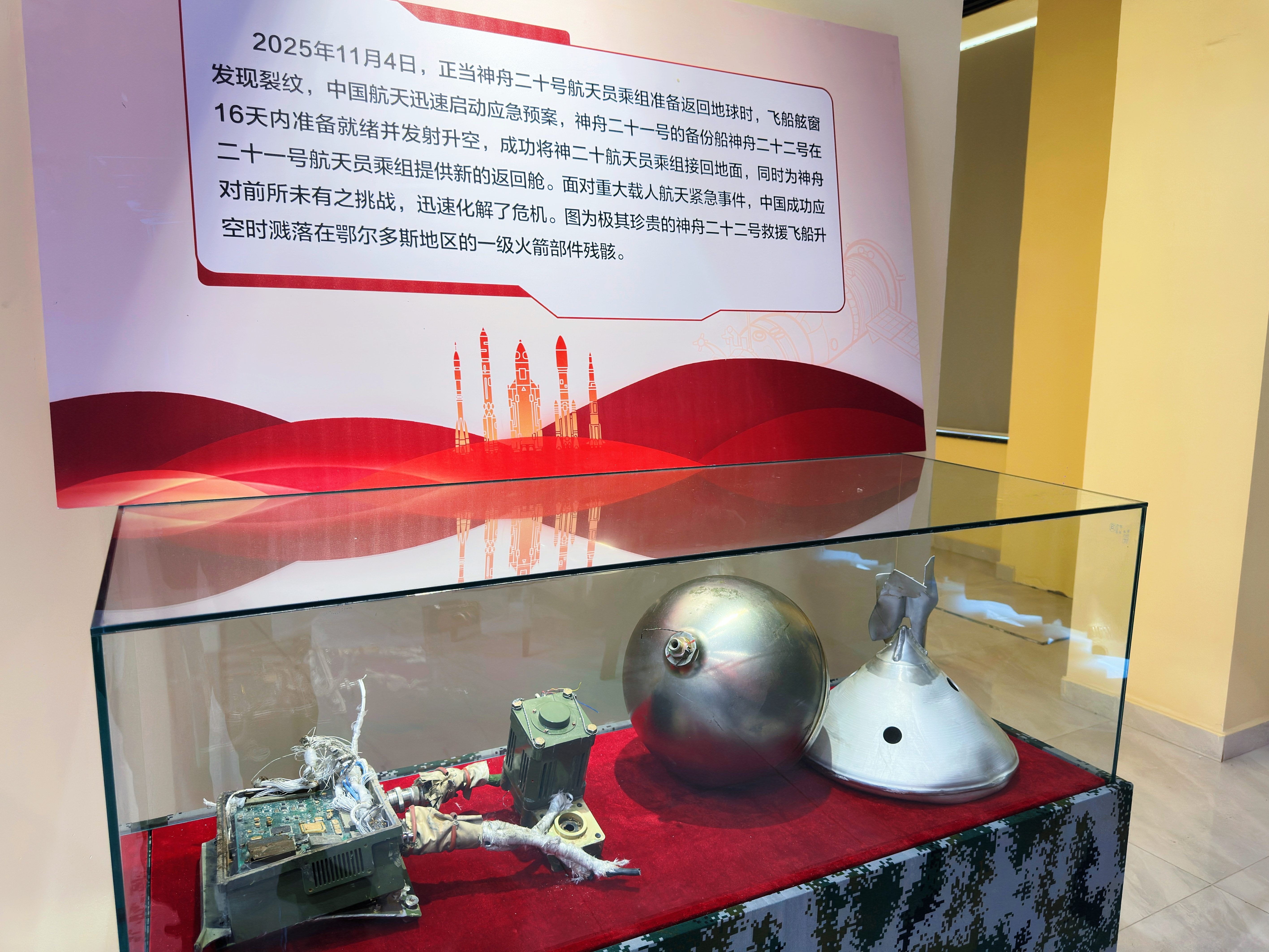 特別值得一提的是,不久前神舟二十二號(hào)運(yùn)載火箭在鄂爾多斯草原一級(jí)分離的部分器件也在此展出,讓航天榮耀觸手可及,極大增強(qiáng)了展覽的科普價(jià)值與紀(jì)念意義。