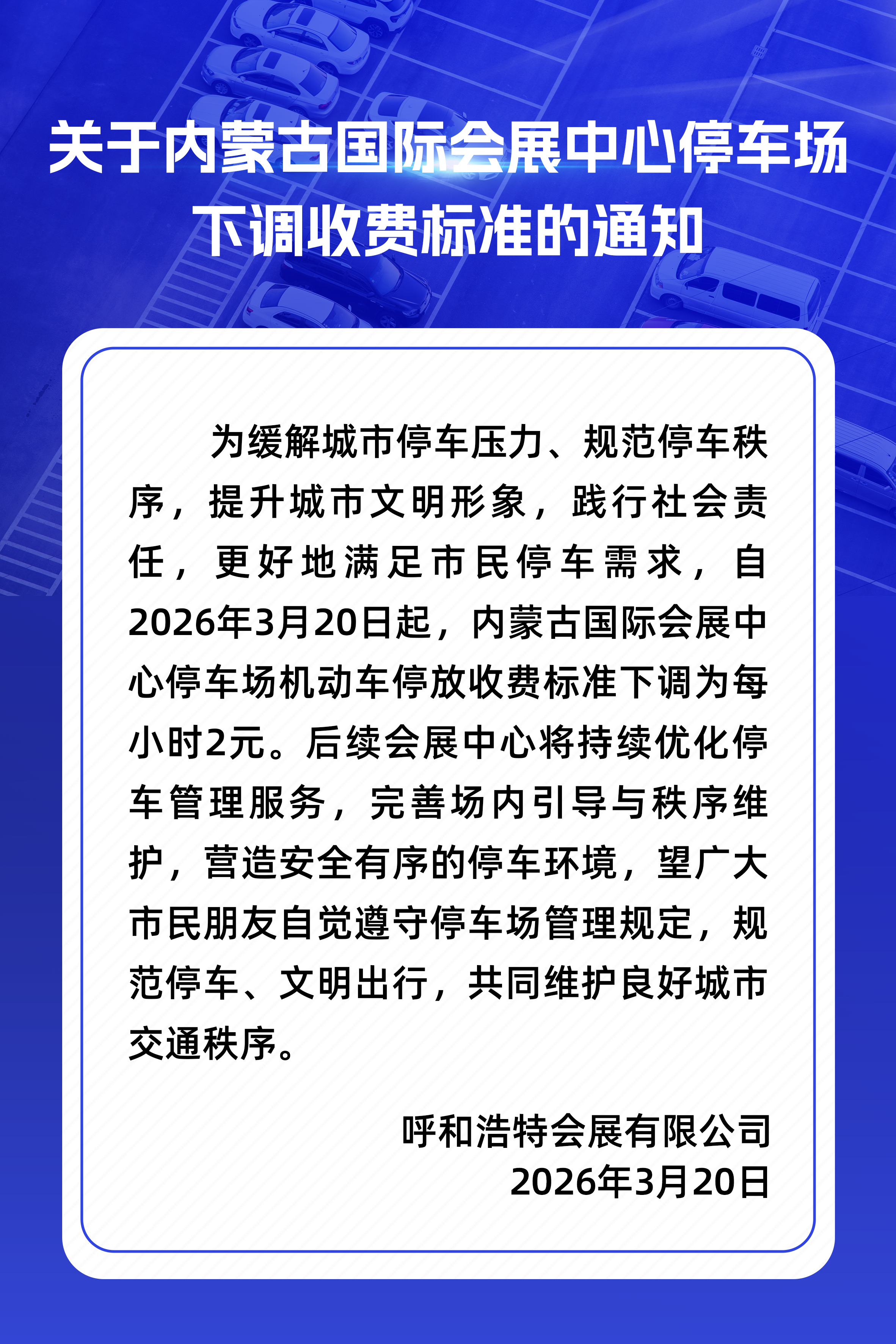 內蒙古國際會展中心停車場下調收費標準通知